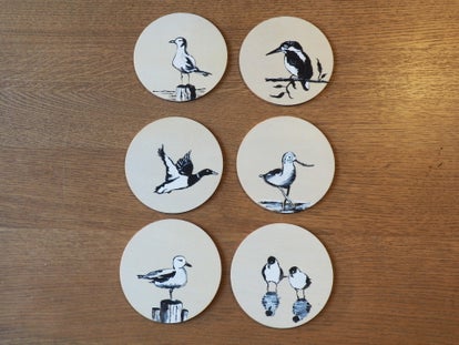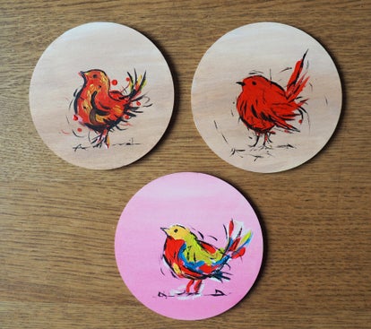 Nieuwe onderzetters naar de natuur geschiderd met acrylverf en afgewerkt met vernis.