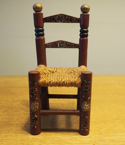Deze nostalgische stoel is handbeschilderd in Hindelooper stijl en kleur. Gevlochten rieten zitting. Hoogte 20 cm. L